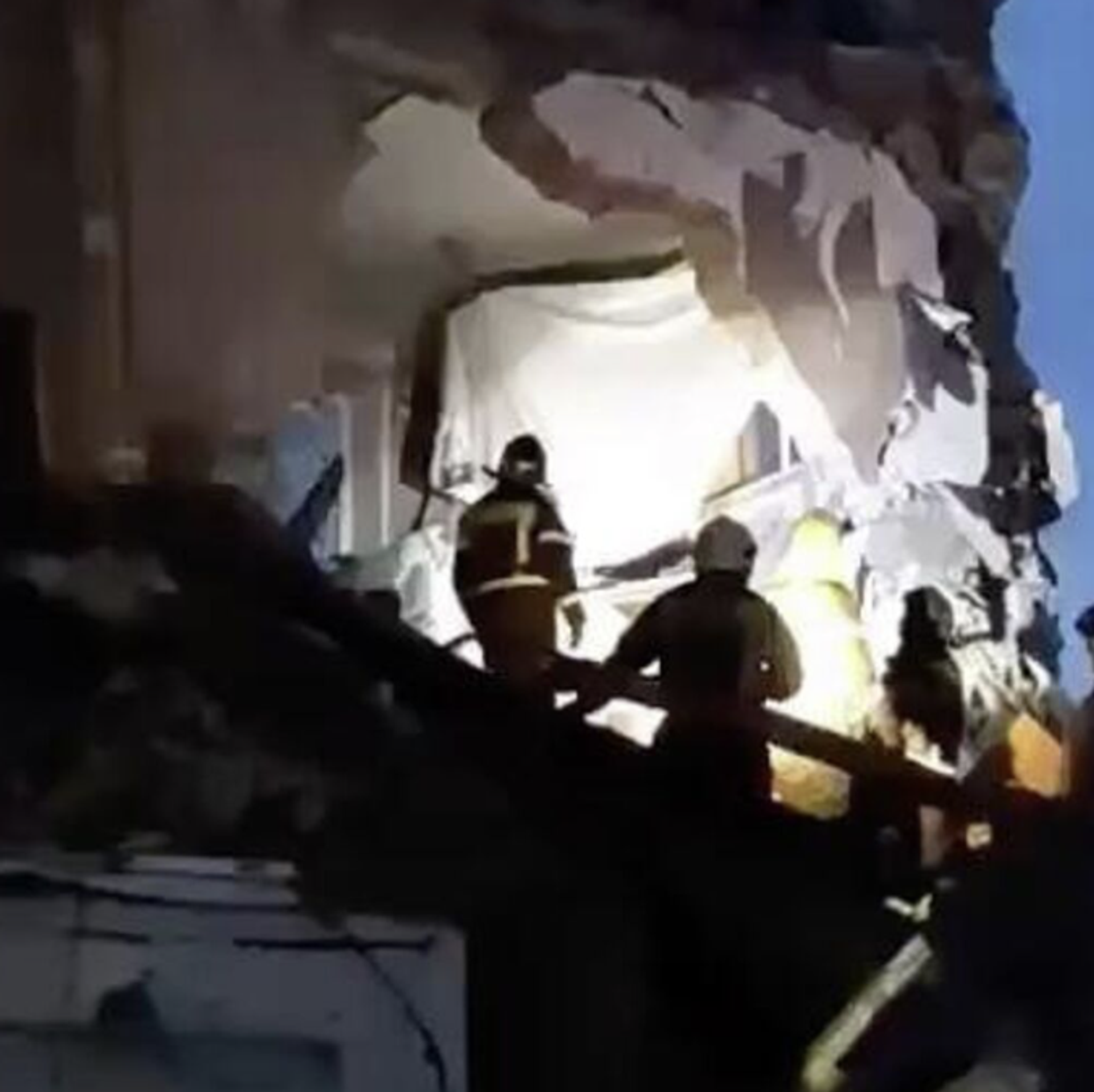 消息显示:“搜救工作仍在继续。正在对废墟进行检查和清理。正在使用工程设备固定悬挑结构。”