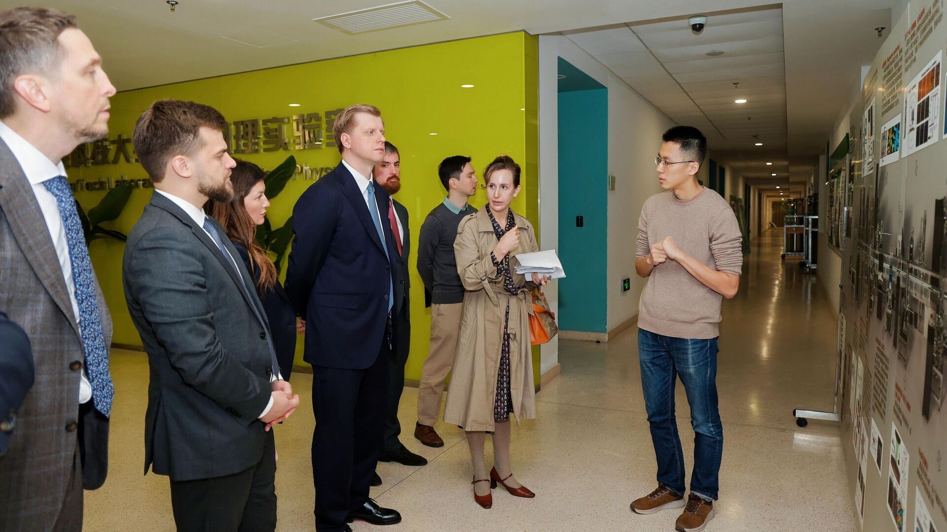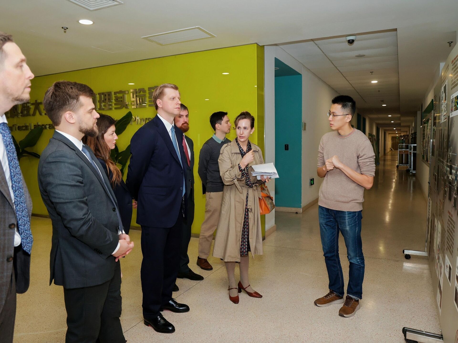 加尔布佐夫局长参观了上海理工大学的几个专业实验室。例如,在拓扑物理实验室,代表团参观了用于开发和测试新材料的真空管线和装置。而在机器人中心,代表团则看到了一项独特的研究成果:一款能够完全模仿人类面部表情的机器人。这种机器人未来有望取代讲师和导游。研发人员计划逐步为其添加全身运动功能,并集成内部智能。预计五年内,这款机器人将能够驾驶汽车并进行日常购物。